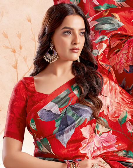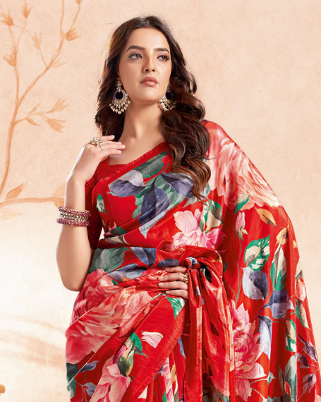 Unveil timeless beauty with the Bhavati Sarees – Printed Saree with Red Flowers. This soft, flowy saree boasts delicate red floral prints scattered over a gentle base, creating a look that’s both graceful and fresh. Crafted for comfort and charm, it’s perfect for everyday wear, office events, or casual gatherings.